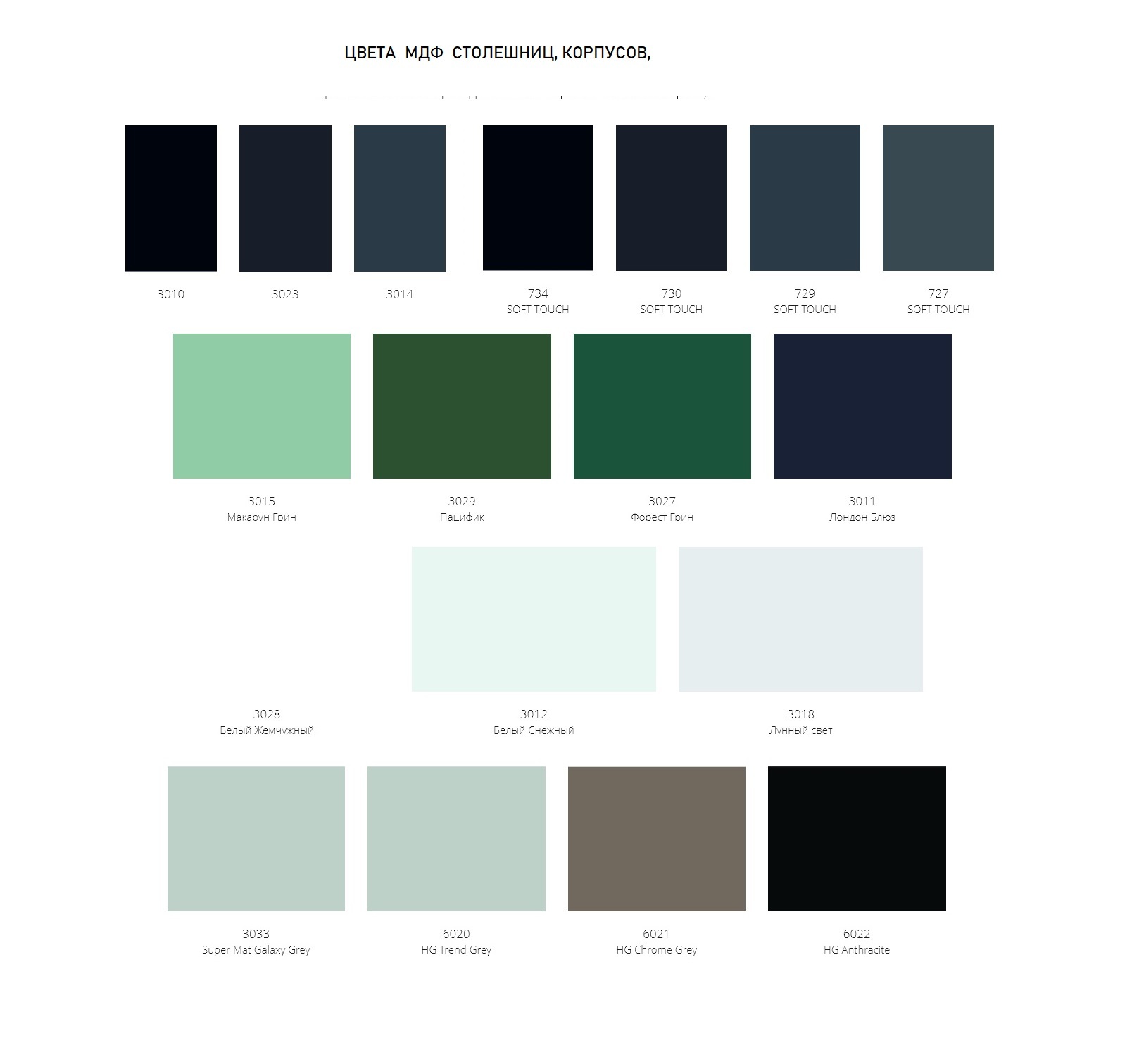 По желанию цвета каркаса, фасадов, полок могут быть изменены